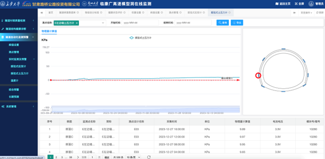 - 平台介绍:本项目为隧道工程安全监测预计健康诊断可视化分析平台,系统采用了物联网、预警预测算法模型等先进技术,并集合研发的先进传感与数据采集设备系统,针对软岩隧道的地应变、压力、温度等指标进行实时自动化采集监测,通过智能算法预警模型,实现了软岩隧道的综合预警及长期预测;通过人工检测、地质雷达等图像技术,对隧道衬砌进行健康诊断,最终为实际施工决策提供数据支撑。